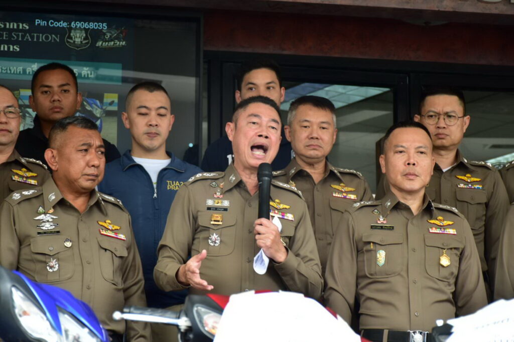 เมื่อเวลา 14.30 น. วันที่ 4 ก.ค. 2568 ที่กองบังคับการตำรวจภูธรจังหวัดสมุทรปราการ พล.ต.ท.สุรพล เปรมบุตร ผบช.ภ.1 พล.ต.ต.วิชิต บุญชินวุฒนิกุล ผบก.ภ.จว.สมุทรปราการ พ.ต.อ.อนันต์ ชัยชาญ รอง ผบก. พ.ต.อ.นิรันดร์ ปิตะกาศ รอง ผบก. พ.ต.อ.จักรกฤช ศรีโรจนากูร ผกก.สภ.เมืองสมุทรปราการ พร้อมกำลังาเจ้าหน้าที่ตำรวจ ร่วมกันแถลงข่าวจับกุมแก๊งคนร้ายก่อเหตุลักทรัพย์รถจักรยานยนต์ในเขตจังหวัดสมุทรปราการและกรุงเทพฯ พร้อมผู้ต้องหาจำนวน 3 คน 1. นายสิทธิเทพ หรือแรง ขอสงวนนามสกุล อายุ 32 ปี 2.นายกมลชัย หรือปอน ขอสงวนนามสกุล อายุ 29 ปี ในข้อหาร่วมกันลักทรัพย์ในเวลากลางคืน 3. นายศราวุธ หรือจ๋อ ขอสงวนนามสกุล อายุ 31 ปี ในข้อหารับของโจร พร้อมของกลางรถจักรยานยนต์ที่ตามคืนเจ้าของได้ 7 คัน ในเขต สภ.เมืองสมุทรปราการ 5 คัน สน.เพชรเกษม 1 คัน สน.บางนา 1 คัน และรถที่ใช้ก่อเหตุ 2 คัน หมวกกันน๊อค และเครื่องจับสัญญาณติดตาม K18