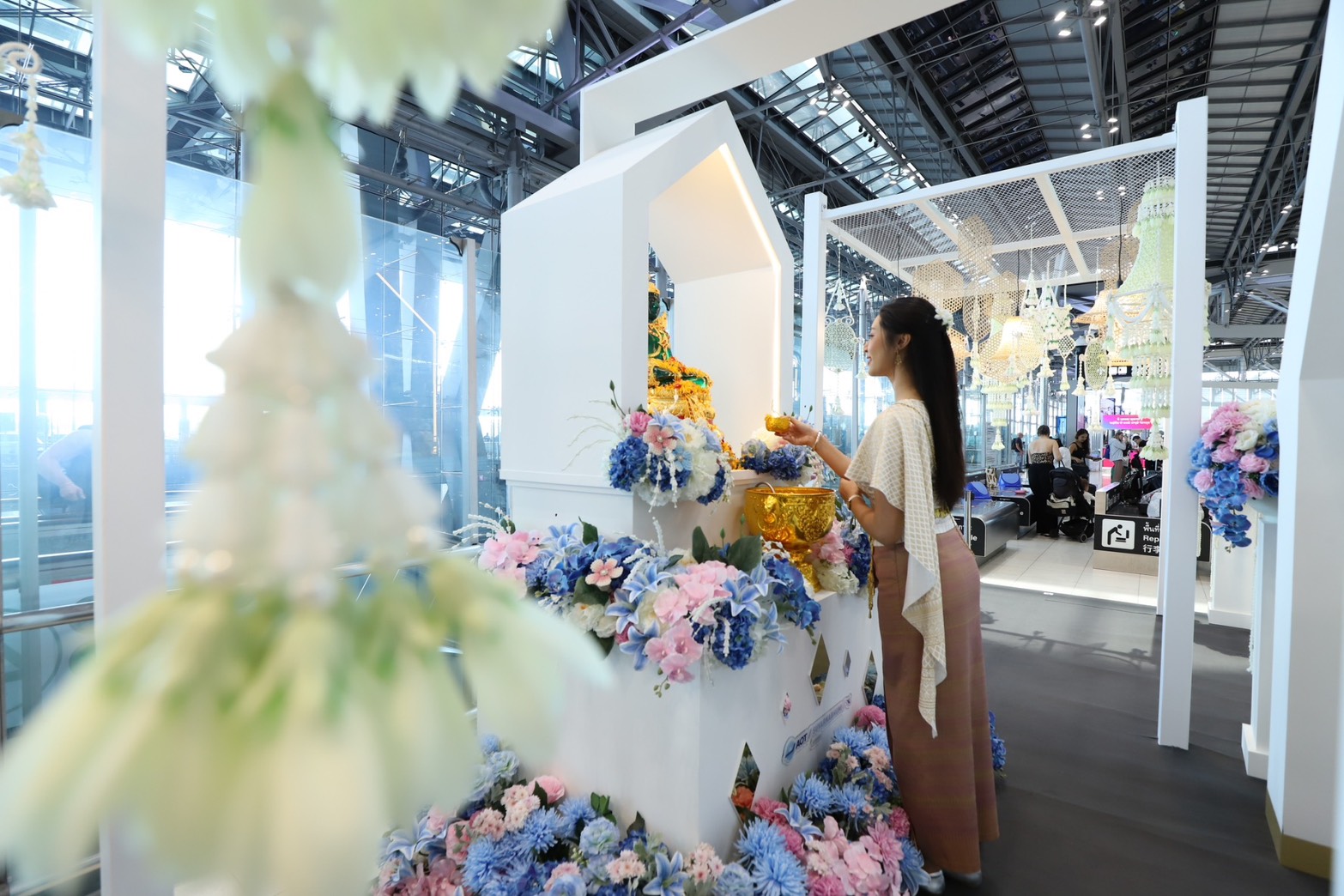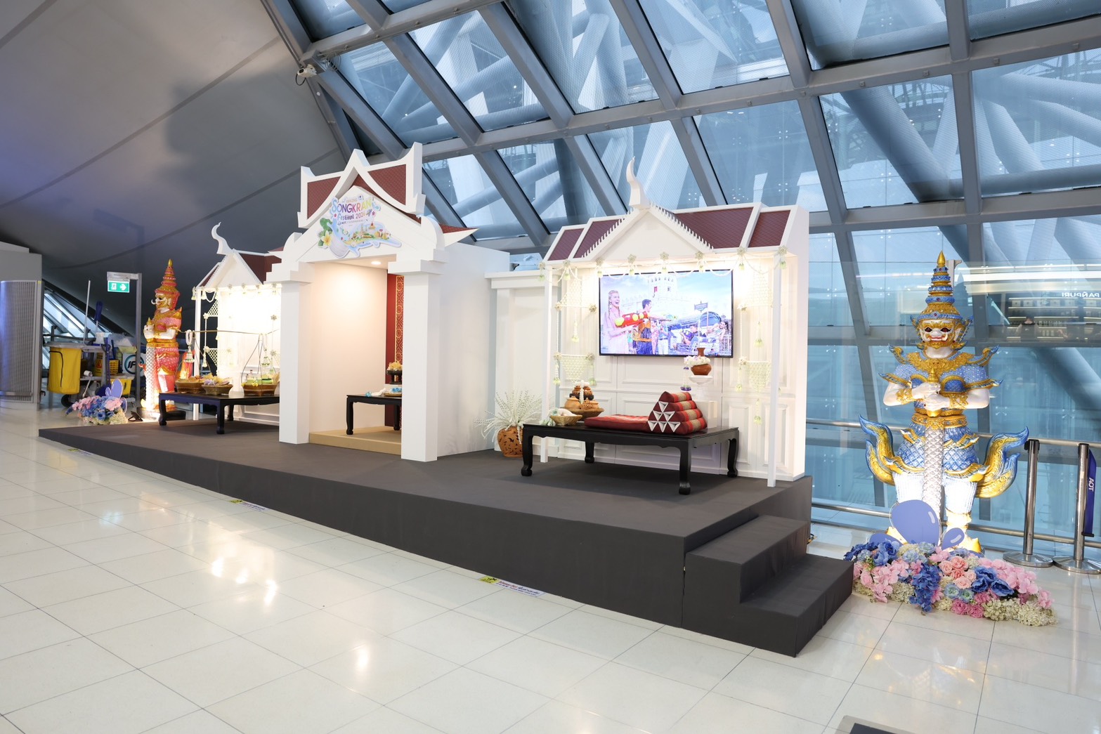 จากทั่วโลกในช่วงเทศกาลสงกรานต์และถ่ายทอดเอกลักษณ์ความเป็นไทย ให้แก่นักเดินทางจากทั่วโลก สำหรับการตกแต่ง ทสภ. ได้จัดจุดถ่ายภาพหลักบริเวณโถงสายพานรับกระเป๋าที่ 11 และ 12 ผู้โดยสารขาเข้าระหว่างประเทศ โดยออกแบบ