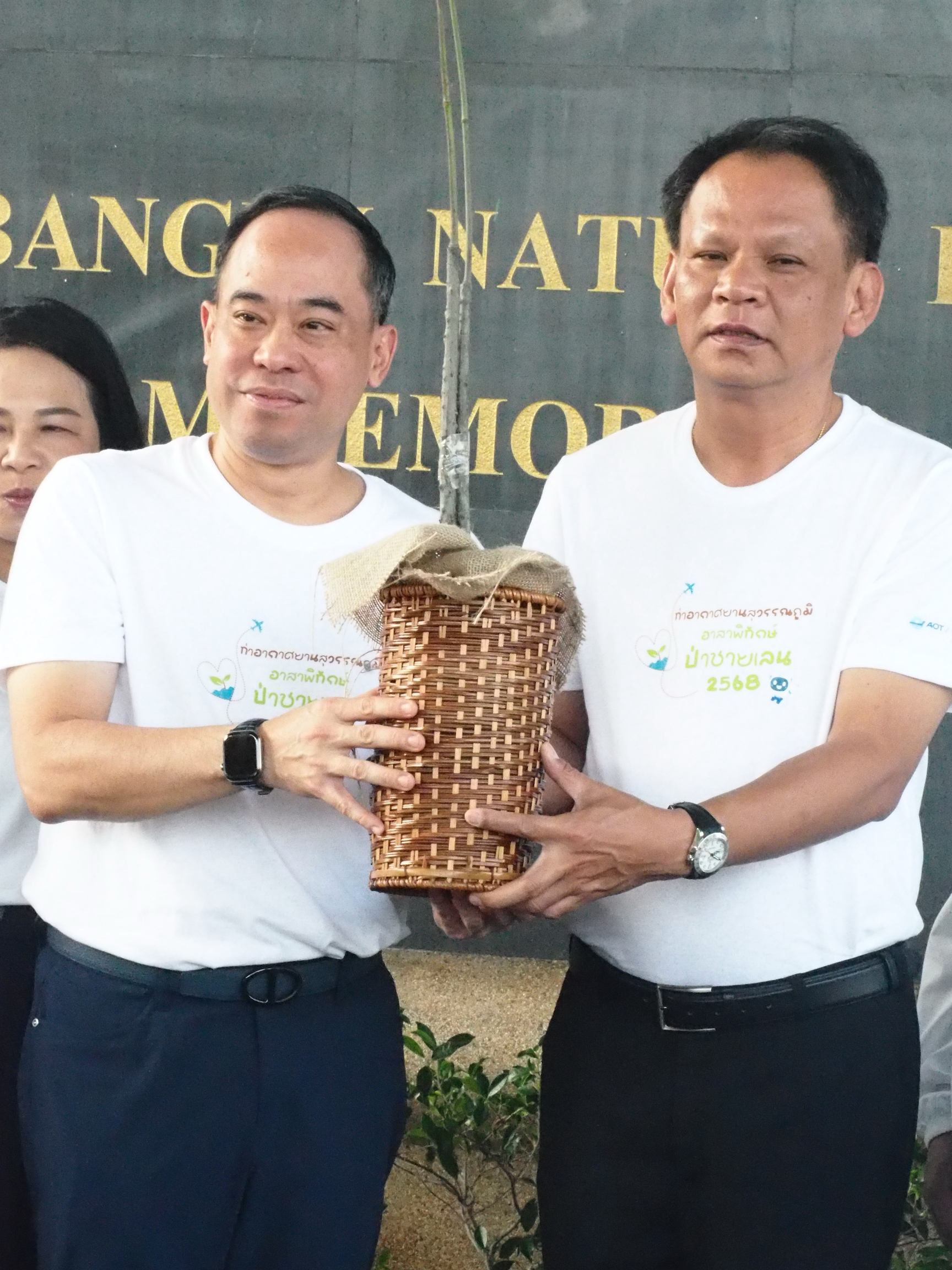 วันนี้ (5 กันยายน 2568) เวลา 09.00 น. นายกิตติพงศ์ กิตติขจร ผู้อำนวยการท่าอากาศยานสุวรรณภูมิเป็นประธานเปิดโครงการ “ท่าอากาศยานสุวรรณภูมิอาสาพิทักษ์ป่าชายเลน” ประจำปี 2568(Suvarnabhumi Go Green 2025) ณ ศูนย์ศึกษาธรรมชาติกองทัพบก (บางปู) จังหวัดสมุทรปราการ โดยมีนางกรรณิการ์ เปรมประเสริฐ รองผู้อำนวยการท่าอากาศยานสุวรรณภูมิ (สายปฏิบัติการ 2)พร้อมนายอดิศักดิ์ ทูลสูงเนิน รองผู้อำนวยการท่าอากาศยานสุวรรณภูมิ (สายปฏิบัติการ 1) นำคณะผู้บริหารและพนักงานท่าอากาศยานสุวรรณภูมิ (ทสภ.) ร่วมกับนักศึกษาจากวิทยาลัยช่างศิลป สถาบันบัณฑิตพัฒนศิลป์ และนักเรียนจากโรงเรียนเทพศิรินทร์ร่มเกล้า รวมกว่า 200 คน ร่วมปลูกต้นโกงกางจำนวน 9,999 ต้น เพื่อฟื้นฟูระบบนิเวศชายฝั่ง และคืนความอุดมสมบูรณ์ให้แก่ชุมชน โดยมี นายวัฒนา เจริญจิตร นายอำเภอเมืองสมุทรปราการ ผู้แทนจังหวัดสมุทรปราการ เข้าร่วมโครงการด้วย
