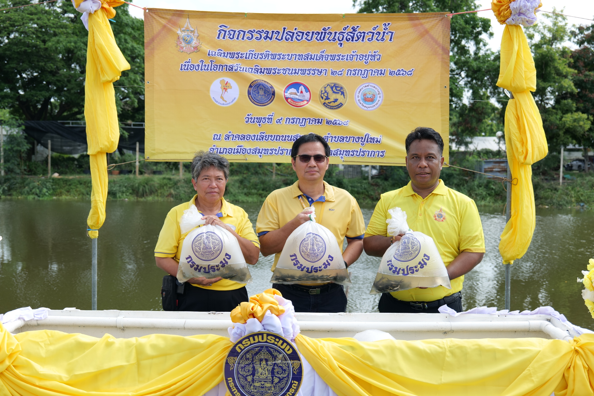วันที่ 9 กรกฎาคม 2568 นายศุภมิตร ชิณศรี ผู้ว่าราชการจังหวัดสมุทรปราการ เป็นประธานในกิจกรรมปล่อยพันธุ์สัตว์น้ำ เฉลิมพระเกียรติพระบาทสมเด็จพระเจ้าอยู่หัว เนื่องในโอกาสวันเฉลิมพระชนมพรรษา 28 กรกฎาคม 2568 ณ บริเวณริมคลองใหม่ เลียบคลองถนนสุขุมวิท ตำบลบางปูใหม่ อำเภอเมืองสมุทรปราการ จังหวัดสมุทรปราการ